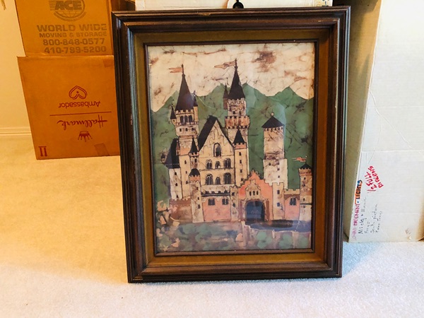Approximately 19 x 24 inches. European castle in attractive wood frame. Very good condition. Asking $35.00.