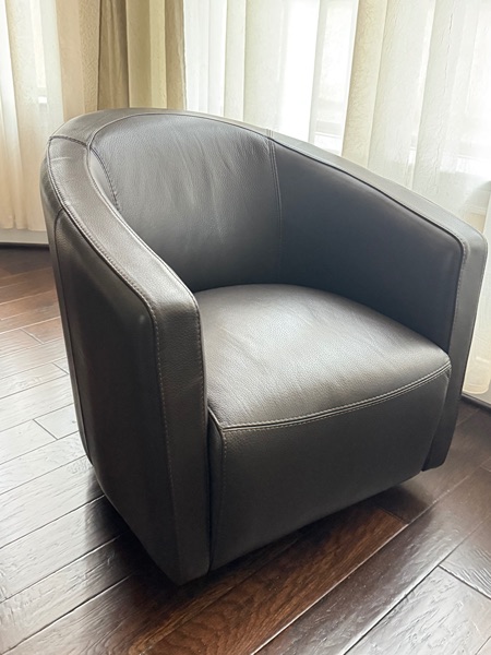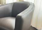 Two beautiful chairs by Calia Italia offer a delightful, modern seating combination to the home and are upholstered in supple chocolate leather for luxurious comfort.