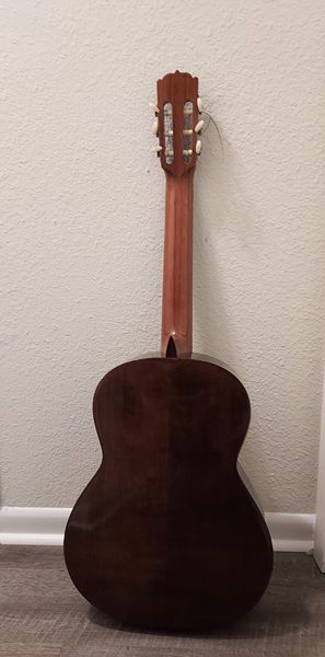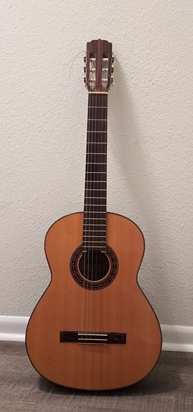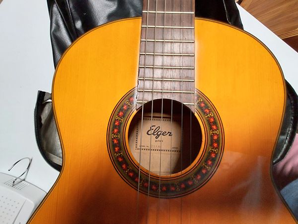 This Elger C118 guitar is a vintage classical acoustic guitar. I believe the woods to be both rosewood and cedar with a mahogany neck. The Elger brand is now Ibanez. This guitar comes with a vinyl carry case. It is in excellent condition and has minimal use. Maintained in a smoke-free environment and properly stored in our home. The price is $175 - cash only. If interested, please text or call 281-825-9606. Thank you.
