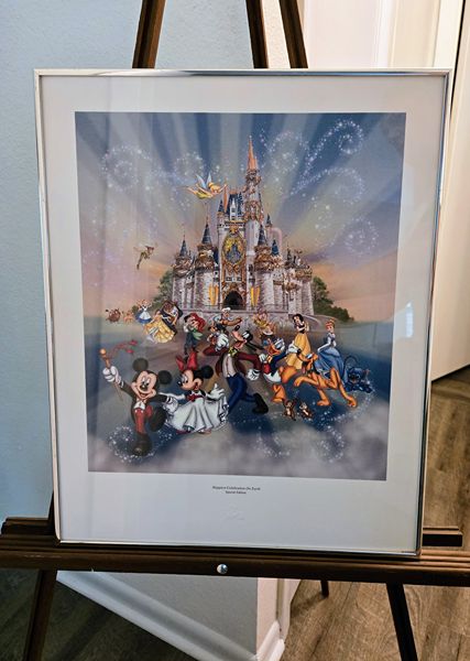 This framed Disney "Happiest Celebration on Earth" special edition print 2005 Lithograph in in excellent condition and has been housed in a smoke-free environment. This lithograh comes with a Certificate of Authenticity. The piece measures 20.25"L x 16.25"W . Priced at $70 - cash only. If interested text or call 281-825-9606. Thank you.