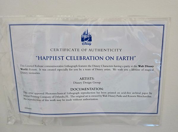 Disney's "Happiest Celebration..." Lithograph w/COA
