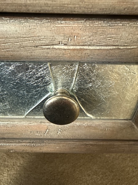 Note:  the glass on two drawers is broken but can be easily replaced (see photos).  Otherwise, the desk is in great condition.