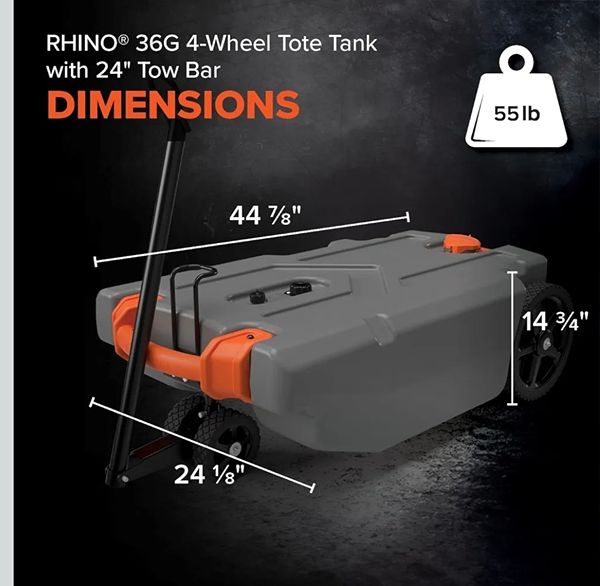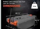 Brand new never used Camco Rhino 36-Gallon Deluxe Portable RV Tote Waist Tank - Features 2 Steerable No-Flat Front Wheels & Built-in Gate Valve - Includes Removable 24' Tow Bar, 3’ Sewer Hose & More RV Accessories. See pictures for dims. If interested please text me at 832-64zero-3422. Price is firm. Pick up only.