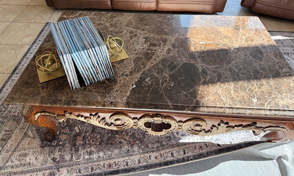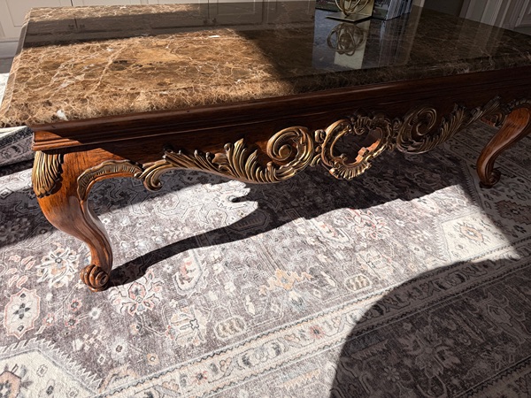 (1) Wood and marble coffee table rectangle 60"Lx36"Wx21"H (very heavy)