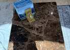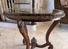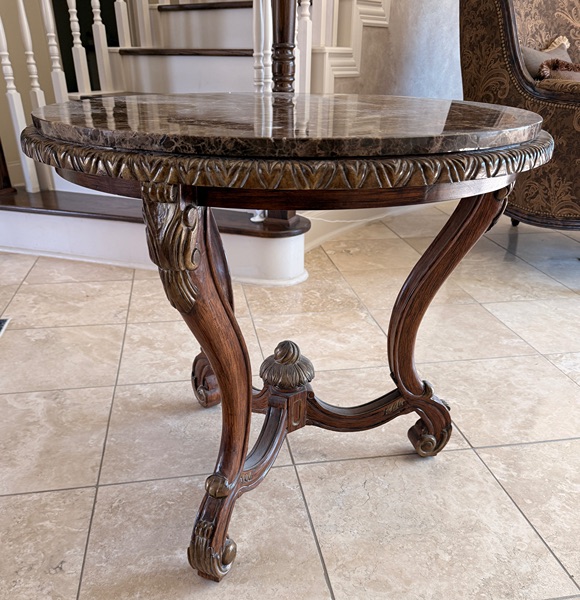 (2) Wood and marble matching end tables round 30" diameter, 28"H