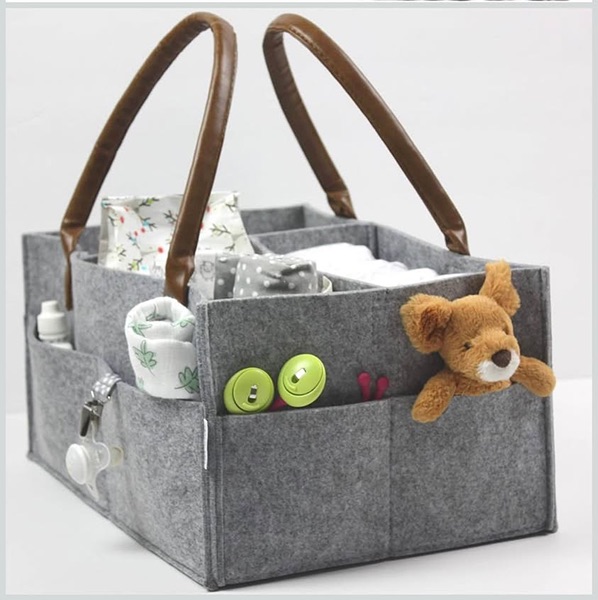 Lily Miles Baby Diaper Caddy Organizer - neutral grey color with water-resistant brown PU leather handle is perfect for boys or girls. This color is currently unavailable on Amazon, but other colors sell new for $23. New, out of packaging. Asking $10.