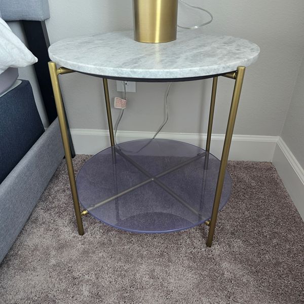 Elegant Round Marble End Table With Brass Frame. Located in The Woodlands 77381. Crossroad kuykendahl road and research forest drive. Delivery is available for a fee.