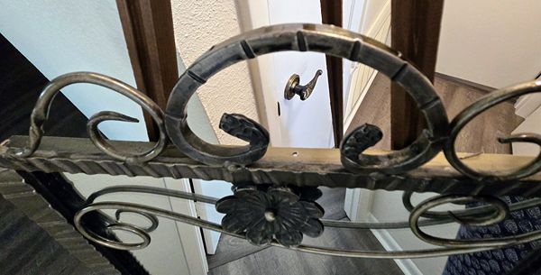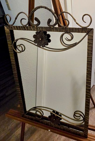 This mirror's frame has custom-made wrought iron accents featuring artisan workmanship with its soldering detail. One-of-a-kind and very unique mirror that offers versatility to fit any decor. Excellent condition. Price is $60 - cash only. If interested text or call 281-825-9606. Thank you.