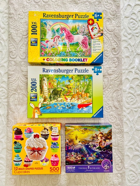 Set of four wonderful puzzles, all in great condition. $15 for all, porch pick up in The Woodlands.