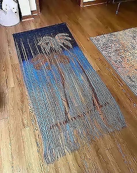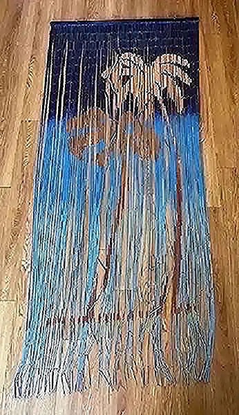 Fits normal size doorways (we used it on a closet so there was a bit of overhang on each side and that looked good too. Only missing a couple strands and has a few kinks from normal wear so discounted appropriately but still looks great!Palm tree - surf - beach - island theme -last pics for price comparisons