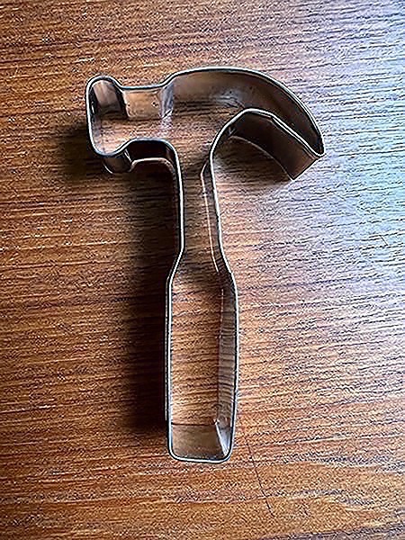 Set of stainless steel cookie cutters (hammer & saw) shaped like tools from Sur La Table. Approx. 5" each…$5 total, firm