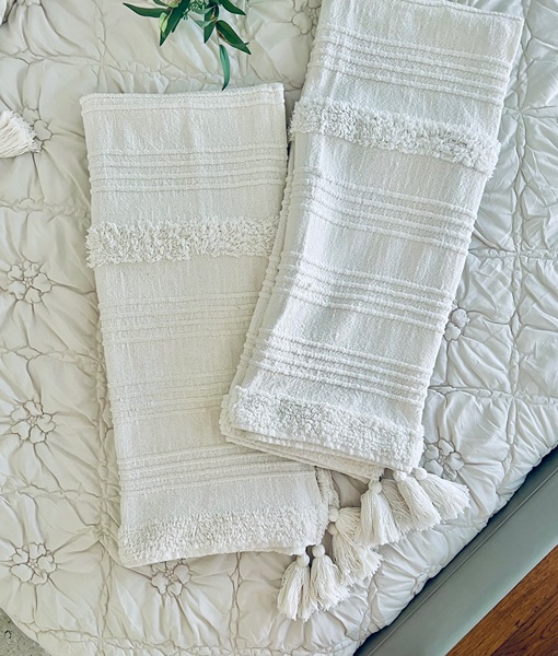 Set of two matching textured throw blankets in an ivory shade. These were only used for decorative purposes, so they're in excellent condition. $20 for both, porch pickup in The Woodlands.