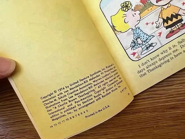 Charlie Brown Thanksgiving Book 1974