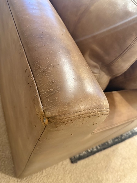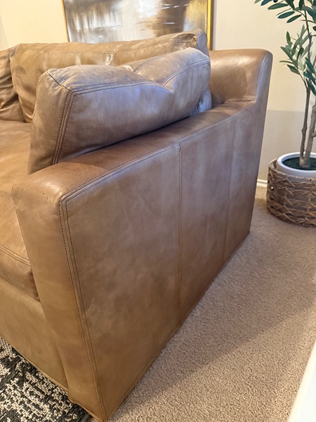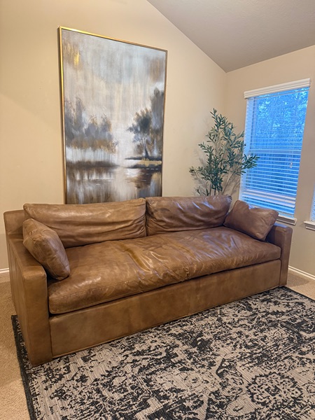 Gorgeous RH Cloud Sofa- this is the Belgian Collection. No longer selling it online. This color is a selling point.  Down feather cushions. It’s extremely comfortable. There’s some cat scratches on the back corner (see pic). Other than that, it’s in great shape. Bones are strong and sturdy. Genuine real leather. Minor signs of wear. Amazing quality that will last.