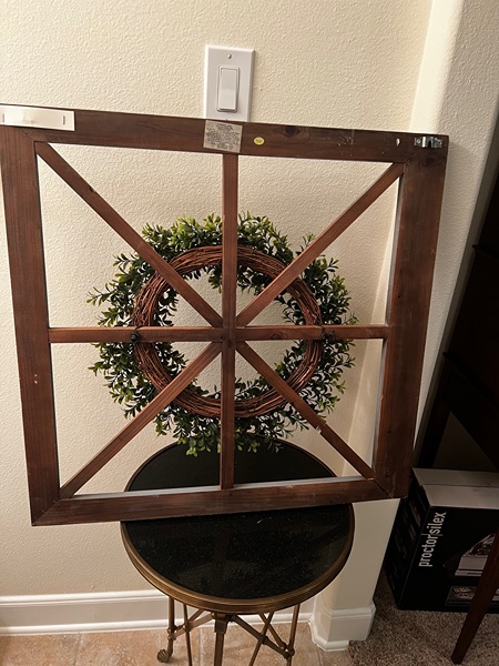 Wooden Rustic Window Frame W / Boxwood Wreath