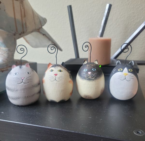 Price is for all four. 4" to the top of the tail. Originally $4.99 each at World Market. Use their tails as very small note holders or use as Christmas ornaments on your cat tree!