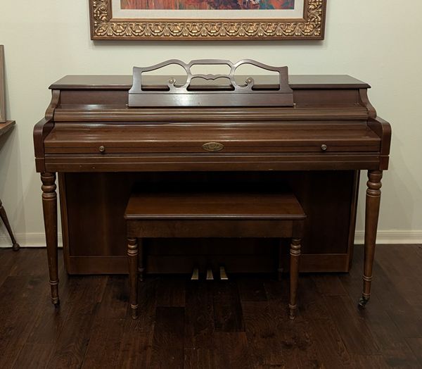 Wood is in good condition, and it sounds good. All keys and pedals work.