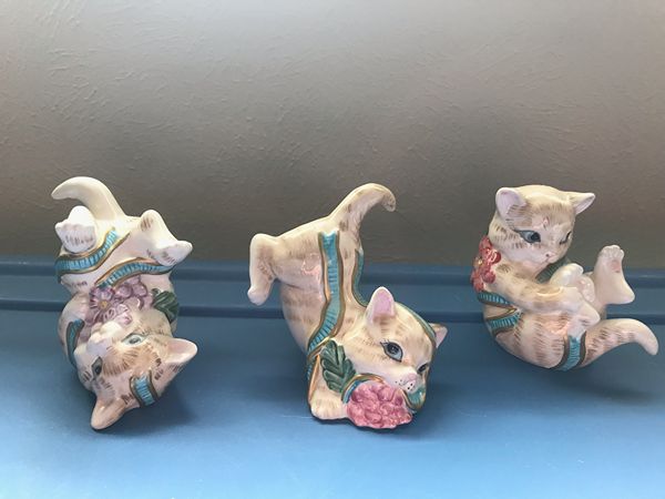 Adorable 3'tall tumbling kitties. Bank is 9' long, 4' wide and 4' tall. Don't need to be sold together. Asking $15 for each item.