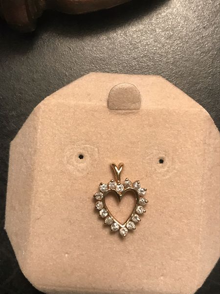 10 Kt Diamond Heart Pendant. It is ¾” long and ½” wide. There are 16 diamonds in the heart. Asking $225.00