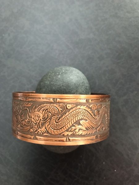 The copper cuff bracelet is 1” wide with beautiful etchings all around it.