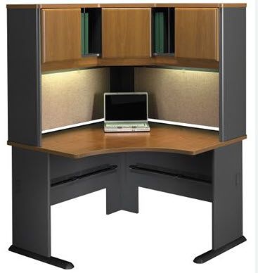 1) 48" Bush Business Furinture CORNER Desk and Hutch Set - Natural Cherry