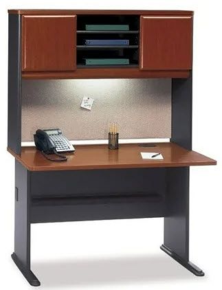 2) 48" Bush Business Furniture STRAIGHT Desk and Hutch Set – Natural Cherry