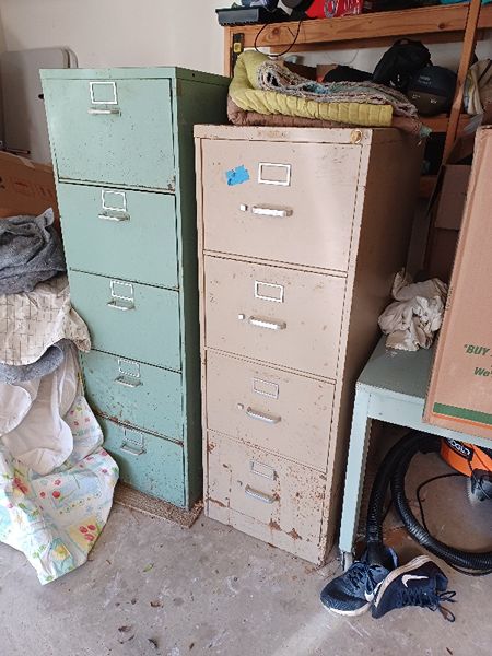 4 drawer and 5 drawer file cabinets. Not pretty, but functional.