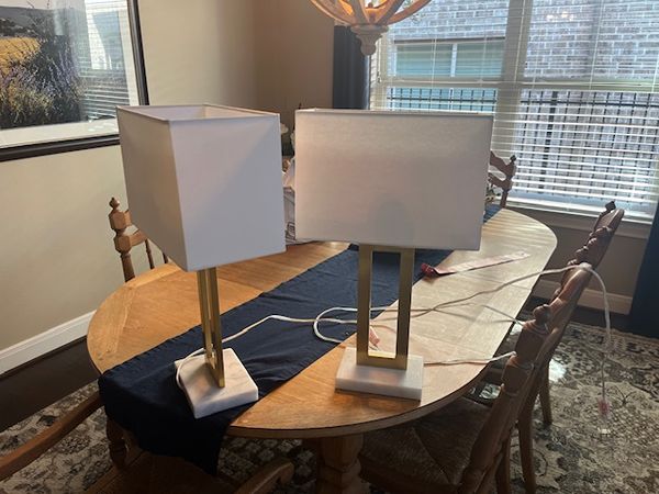 Pair of lamps 22 inches tall. Gold tone with marblelike base.