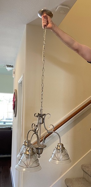 Beautiful silver chandelier. Nothing wrong with it, just wanted a different style.