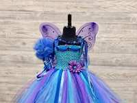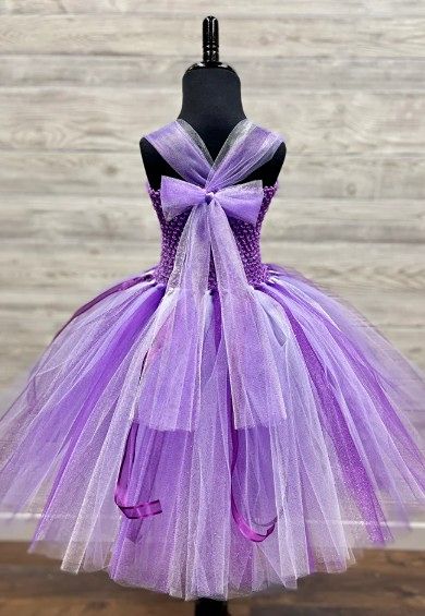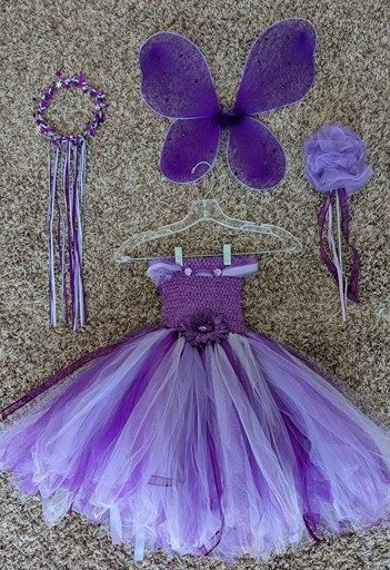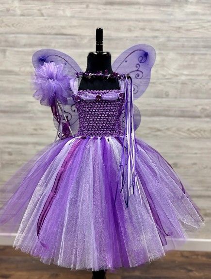 Purple Lavender White Fairy Princess Birthday Costume w/Crown Wand Fairy Wings - Full 3 Layer Tulle