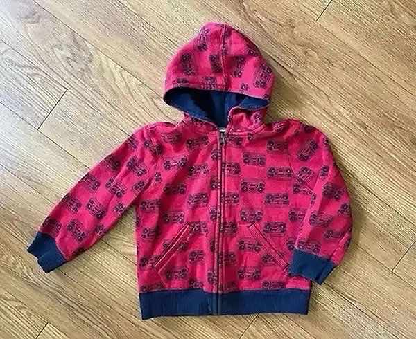 Red hoodie with boombox print and pockets. Size 5T…$10 firm