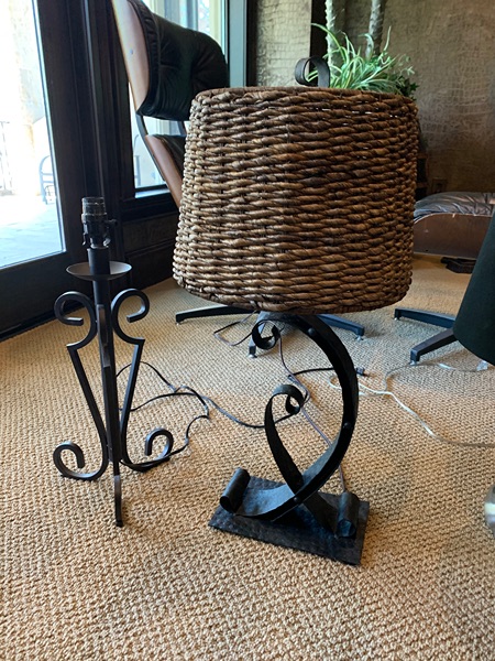 Black textured iron with wicker shade  $50