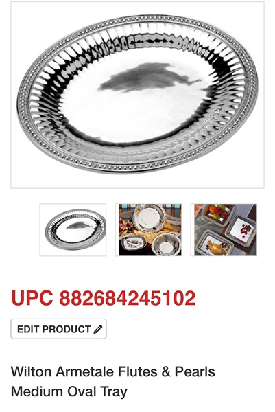 Wilton Armetale medium size oval serving platter/tray in Flutes & Pearls pattern. Wilton Armetale Serveware is an aluminum-based alloy, handcrafted, designed to last a lifetime, and should be hand washed. It's in very good used condition from smoke free home. There's wear/usage, but it is structurally sound. Pictures shown with and without camera flash so you can see the wear in the finish. Measures approx. 14.5 inches long and 12 inches wide. $20