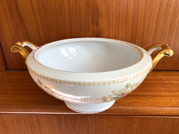 Beautiful floral pattern called Arbor. Tureen dome cover has knob handle. Lid does not fit tight, but keeps food warm. Measures 8 inches in diameter and 8 inches tall. Asking $6.00.