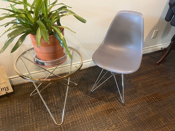 Molded Fiberglass / Poliy Shell, Side / Desk Chair With 3 Crome Legs. Style Herman Miller.