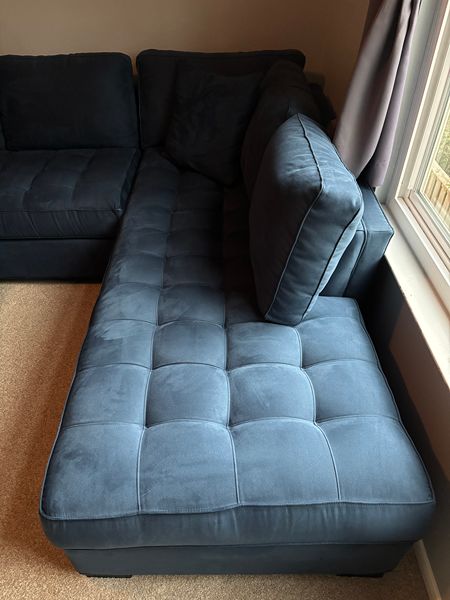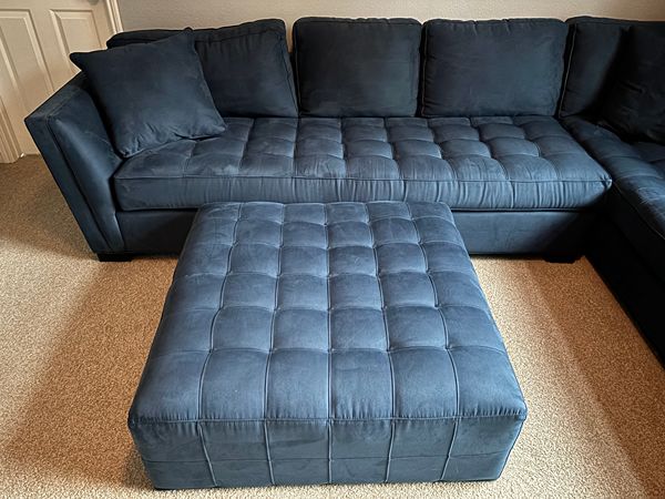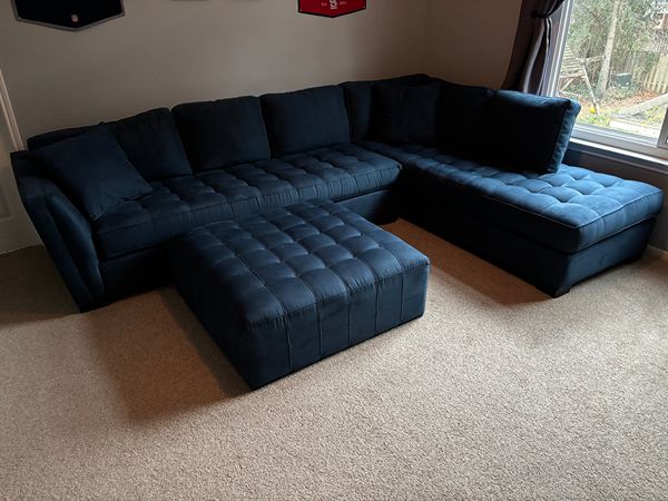 Cindy Crawford Harper Sectional for sale. Barely used and in great condition. Retail is $2,000 at Rooms To Go, we're offering it for $750 payable via Zelle or Venmo. Dimensions are pictured. Back pillows are removable. Pick up only and you'll need a truck.