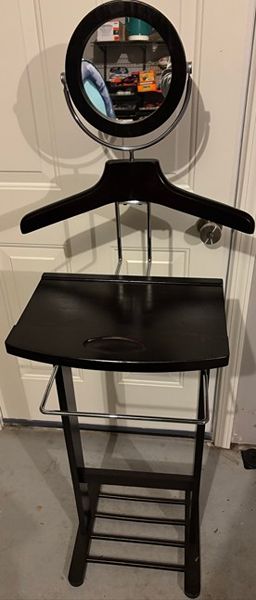For sale is a freestanding valet stand. $25 and pick up only. Dimensions are 56 inch Height x 21 inch Width.