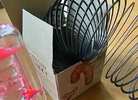 I forget the names of everything but the slinky (which is in good shape, except for the top). The oil and water toy is neat to watch/flip. The other gyroscope toy also glows in the dark!