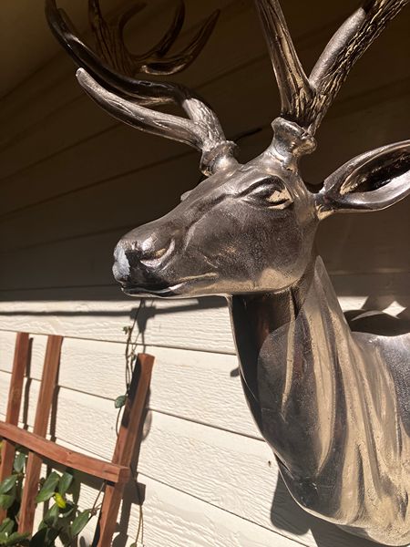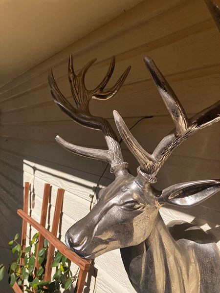 Large cast aluminum deer head with polished finish. 26T, 17"W and 10 1/2"D