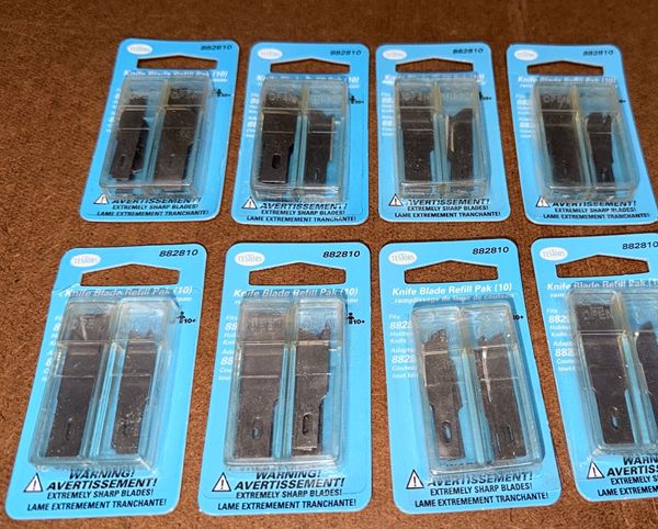 These are 8 sealed packages of Testor knifes. Each package includes 10 knifes. See my other listings; I have some tools for sale. Cash only. Local pickup in The Woodlands, 77381.