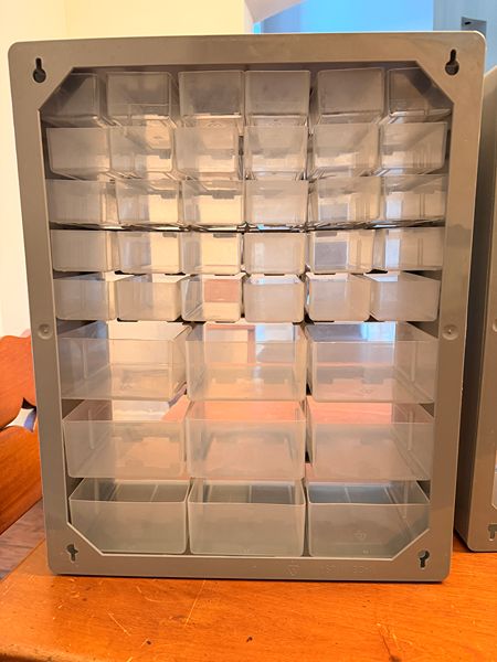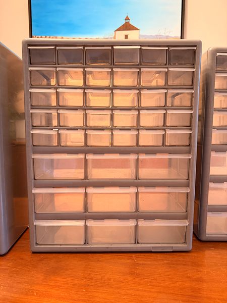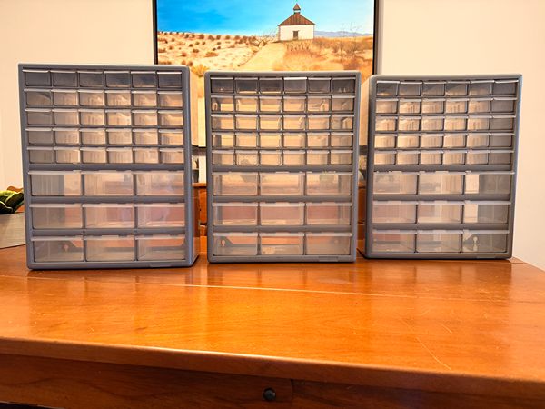 Each cabinet has 39 drawers. Gently used in great shape. The dimensions of each cabinet are Height: 18-3/8. Width: 14-7/8. Dept: 6-1/4. I'm selling the set of 3 cabinets for the price of one. I washed each drawer individually to ensure they are ready to use. See my other listings; I have some tools for sale. Cash only. Local pickup in The Woodlands, 77381.