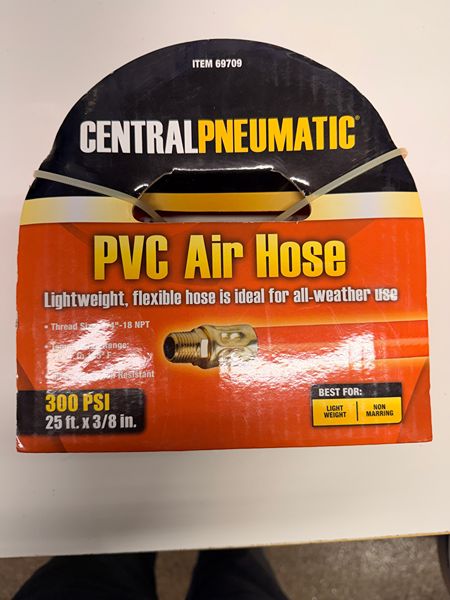 PVC Air hose. Lightweight and flexible. 25ft long, 3/8 hose with ¼ -18NPT connections. Cash only. Pickup in The Woodlands, 77381.