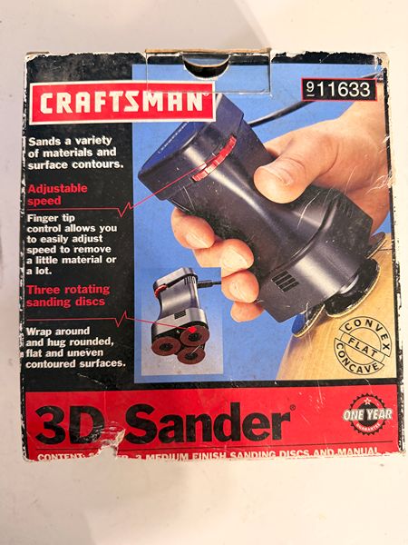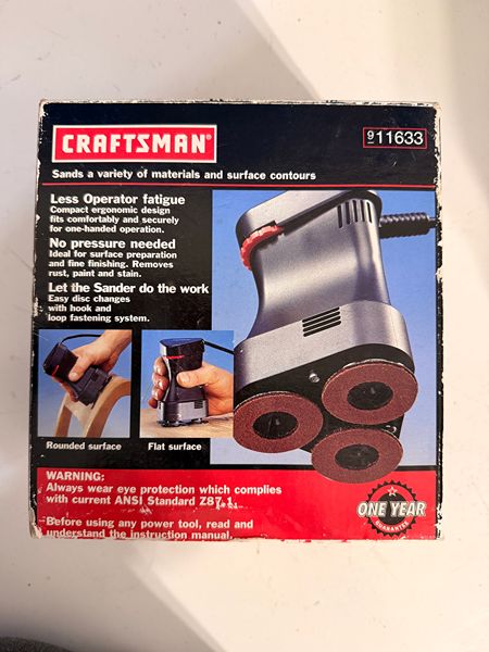 Great to sand round or irregular areas. It is used and the box worn. The user manual is included. See my other listings, I also have some tools for sale. Cash only. Local pickup in The Woodlands, 77381.