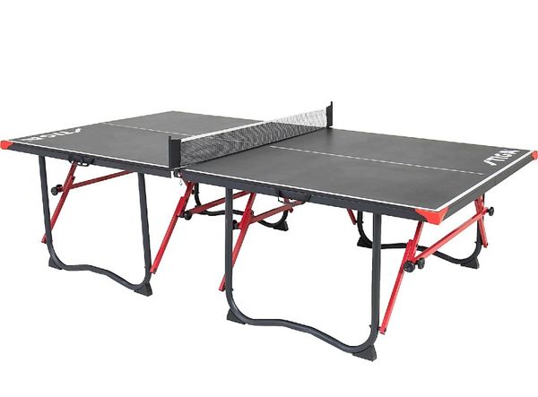 Competitive and recreational players alike will get plenty of use out of the STIGA VOLT Portable Table Tennis Table. It's made from highly durable materials and meets regulation size requirements, but it's also completely portable and storage-friendly. Hinges allow it to fold, and built-in wheels help move it along. Net and posts included.