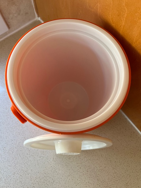 Retro style with white lid and handle. Great condition! 1970’s cool!…$20 firm