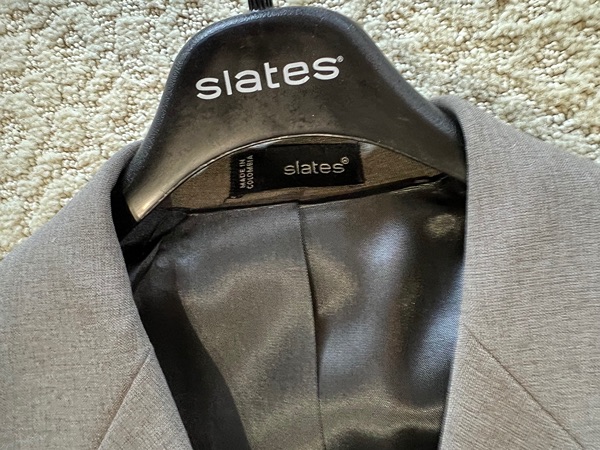 Gray suit jacket (40 long) with assorted ties (15 total!) and two pairs of pants (33 waist)…$20 total, firm