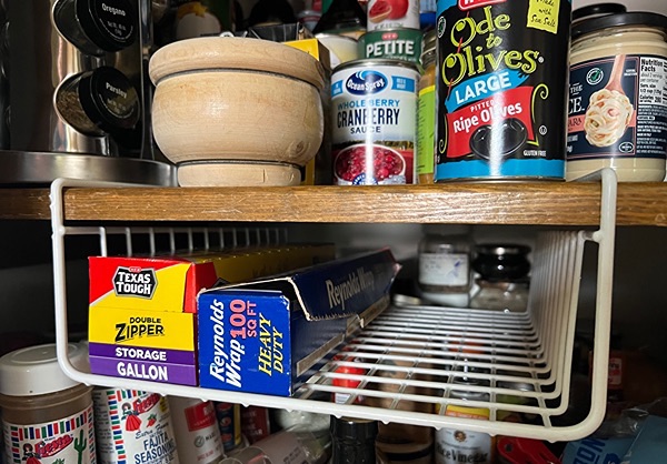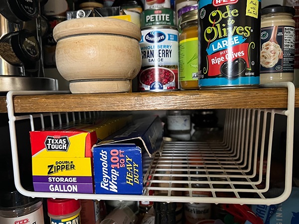 Wire shelf for pantry storage. Great for foil & wrap!…$15 firm