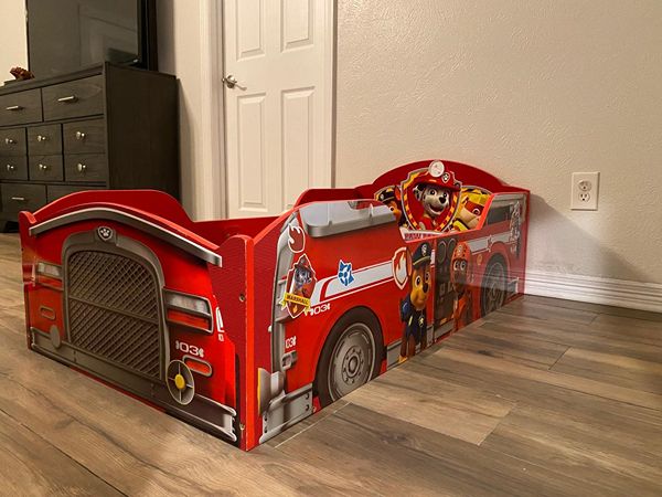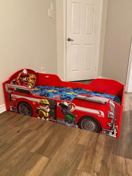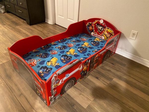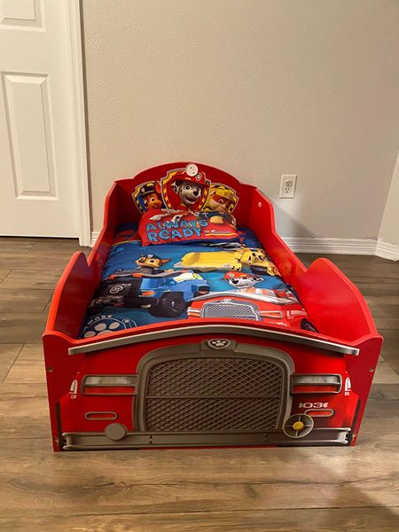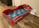 Selling due to change of residence, barely used like new toddler bed with Paw Patrol design. Includes Delta children Twinkle Stars 2 Stage Premium Innespring Crib and Toddler Mattress - Waterproof - GrrenGuard Gold Certified. 50 yr warranty. $ 90.00