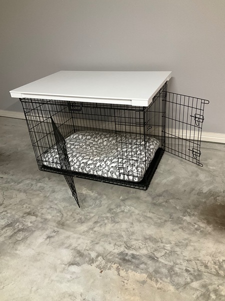 Sturdy arttached top perfect for food storage bins and bowls, grooming tools and leash.