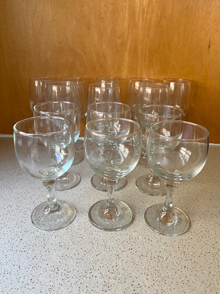 Set of 14 wine glasses- red & white wine…$20 total, firm